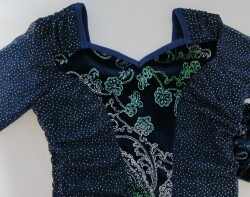 肩とウエストはベルベットの上にグリッターメッシュを重ね、シャーリングを施しました。