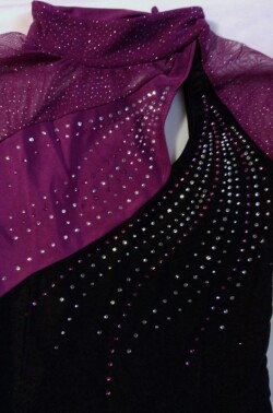グリッターメッシュの長袖は袖先までサングリアカラーからブラックへと
