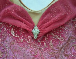 背中も同様にメッシュのギャザーが施されクリスタルのモチーフが輝きます。