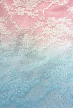 ピンクグラデーション~ホワイトライクラ生地の上に