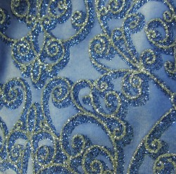 ベルベットスカートには2色のグリッターで陰影をつけたスワール模様を描いています。