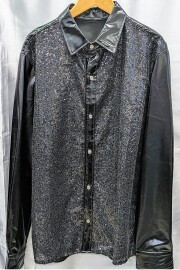 3.ブラック レザー調スパンコール シャツ サイズ M/l